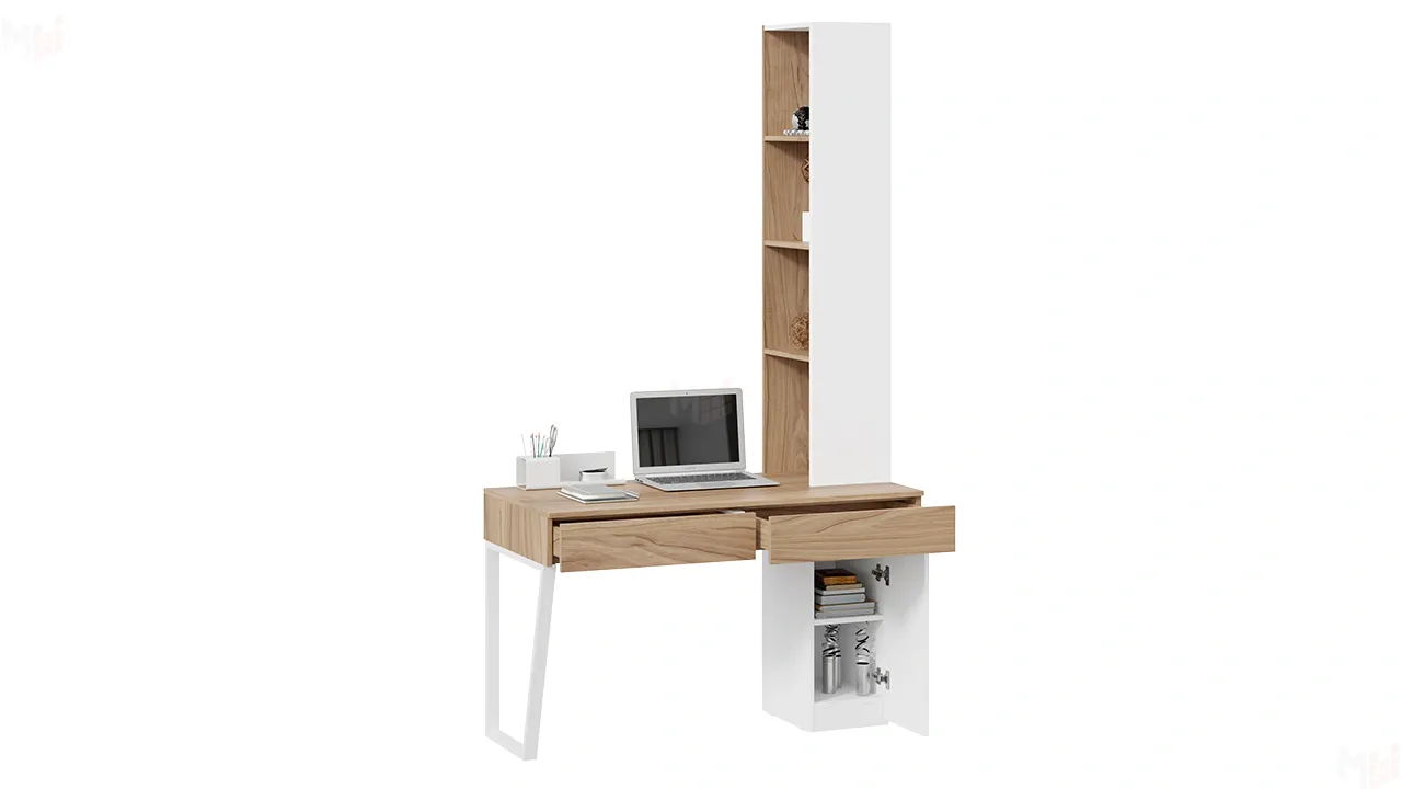 Стол письменный со шкафом комбинированным Порто - СМ-393.15.012 Яблоня Беллуно, Белый софт