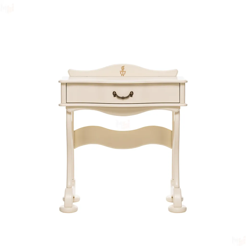 Изящный стильный туалетный столик. Плавность линий подчеркнут изысканность спальни. Большой выдвижной ящик позволит разместить необходимые предметы и аксессуары. Столик в сочетании с комодом, банкеткой и зеркалом составит отличный гарнитур.