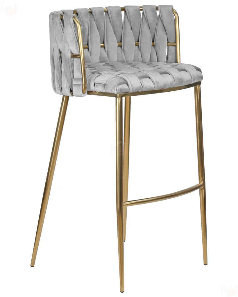 Стул барный DOBRIN EMMA GOLD (светло-серый велюр (135-37))