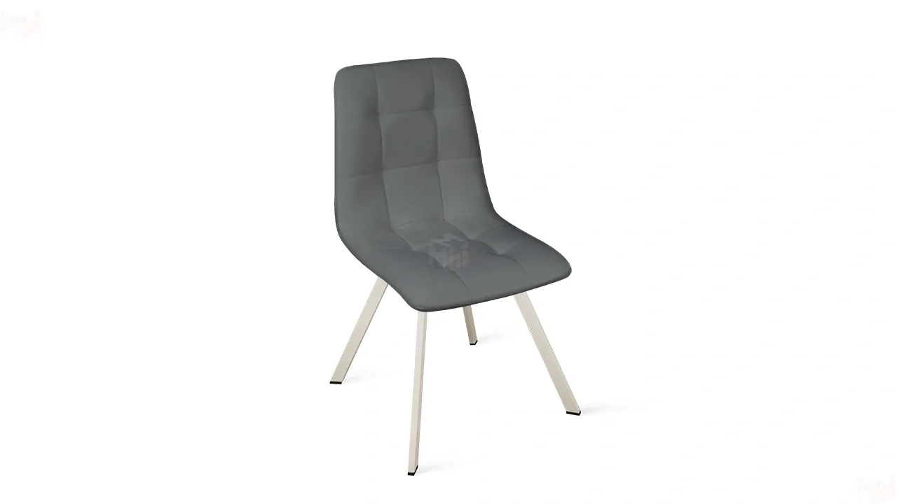 Обивка изготовлена из кожзама, что придает стулу привлекательный внешний вид. Это современный полиуретановый материал, очень схожий по фактуре и внешнему виду с натуральной кожей. Отстрочка на мягком элементе в виде квадратов — это именно то, что нужно для создания стильного интерьера. Металлические ножки с порошковым покрытием обеспечивают надежную опору модели. Они расставлены под углом, что гарантирует максимальную устойчивость конструкции.