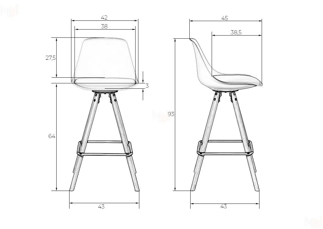 Стул полубарный DOBRIN RONNI (ножки светлый бук, черный (B-03))