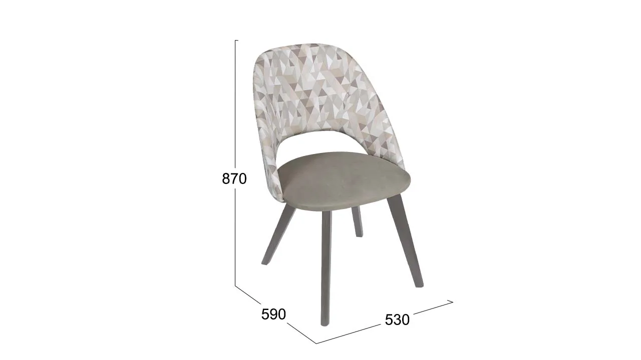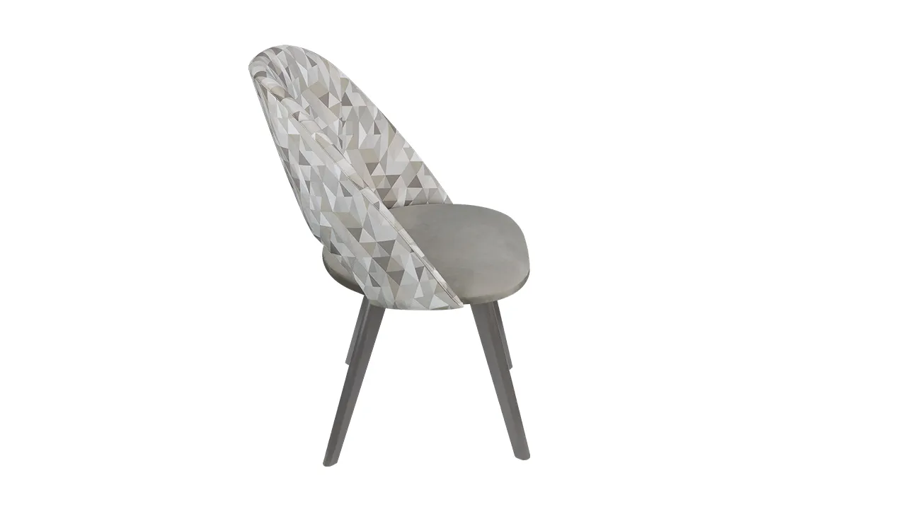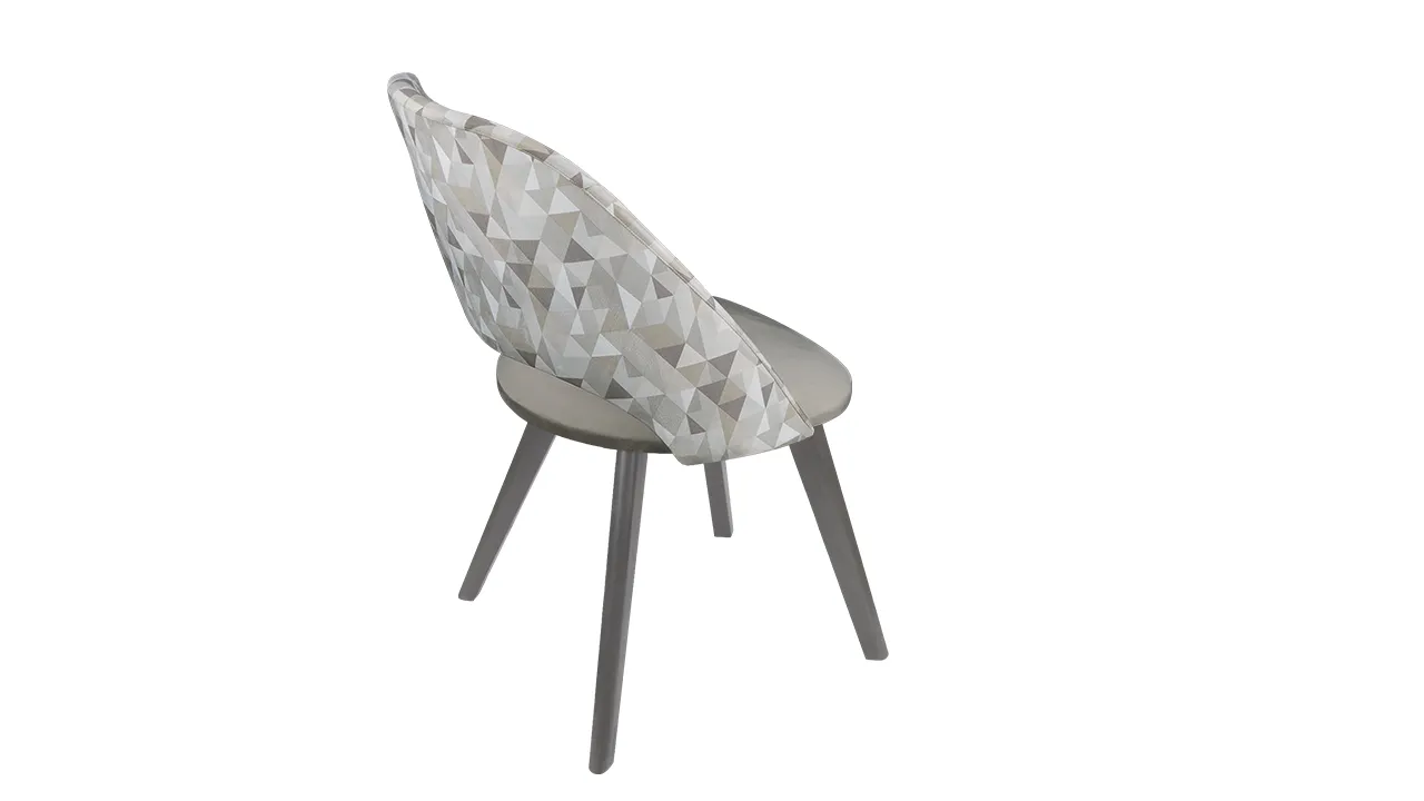 Спинка модели с легким геометрическим рисунком добавляет уникальности и оригинальности, а однотонная ткань на сиденье придает стулу элегантность и стиль.