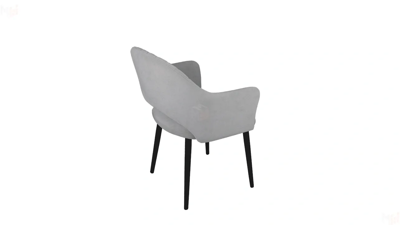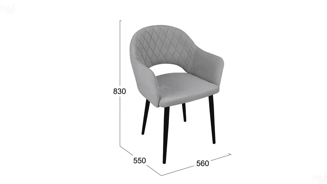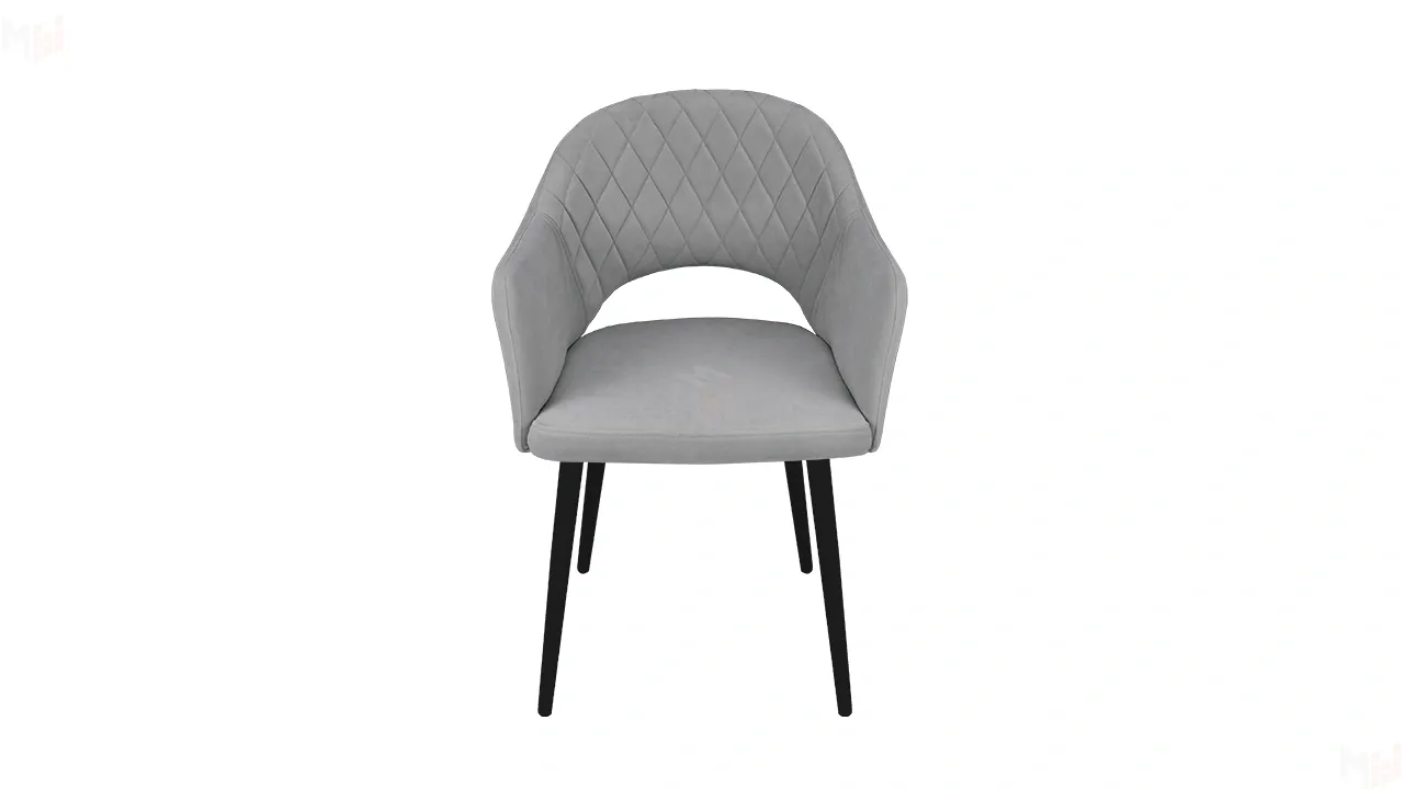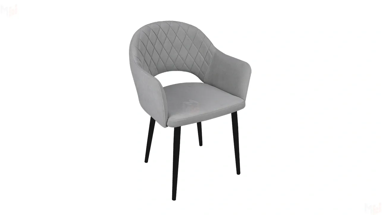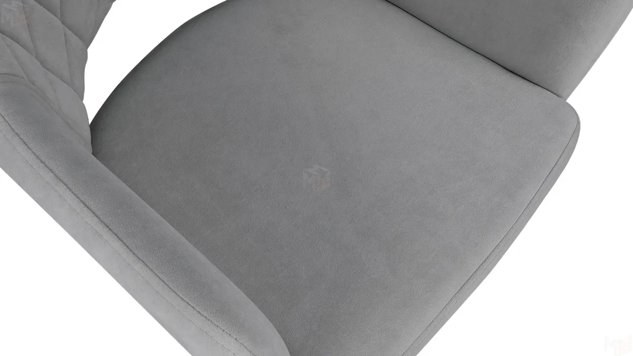 Модель с сиденьем и спинкой, плавно переходящей в подлокотники, дополнена велюровой обивкой со стежкой в форме небольших ромбов