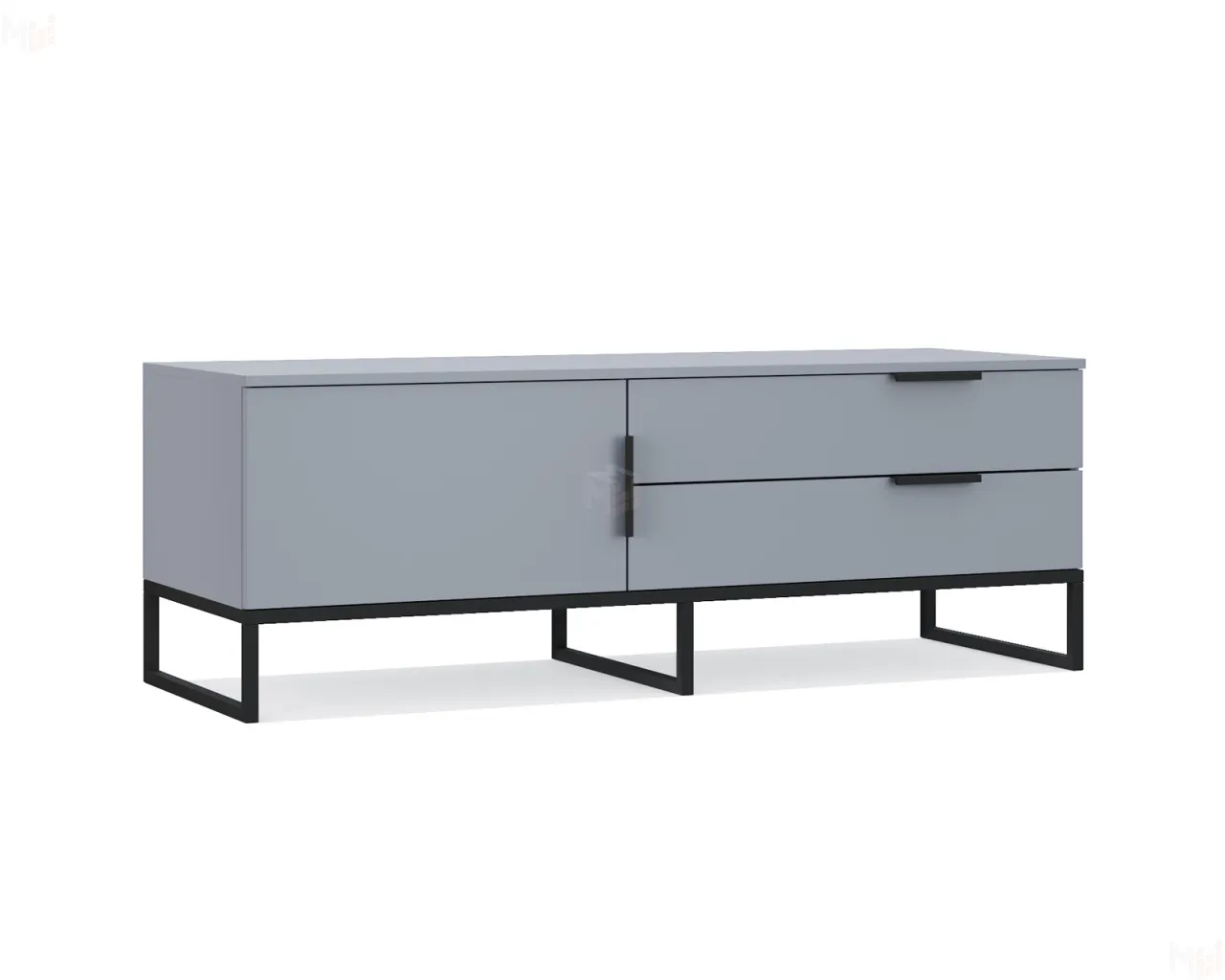 Тумба «Бруклин 2» выполнена из материала ЛДСП: ширина - 140 см, высота - 50 см, глубина - 51 см. В сочетании с металлическим профилем черного цвета добавит уют в интерьер. -