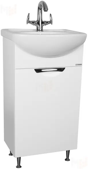 Под умывальник - Азов 45 (В комплект не входит). Габариты изделия указаны без учёта ножек, умывальника, упаковки и ручек. Поставляется в собранном виде. Фурнитура производства Германии. Дверцы оснащены механизмом плавного закрывания. Фасады покрыты высокоглянцевой эмалью производства Италии.