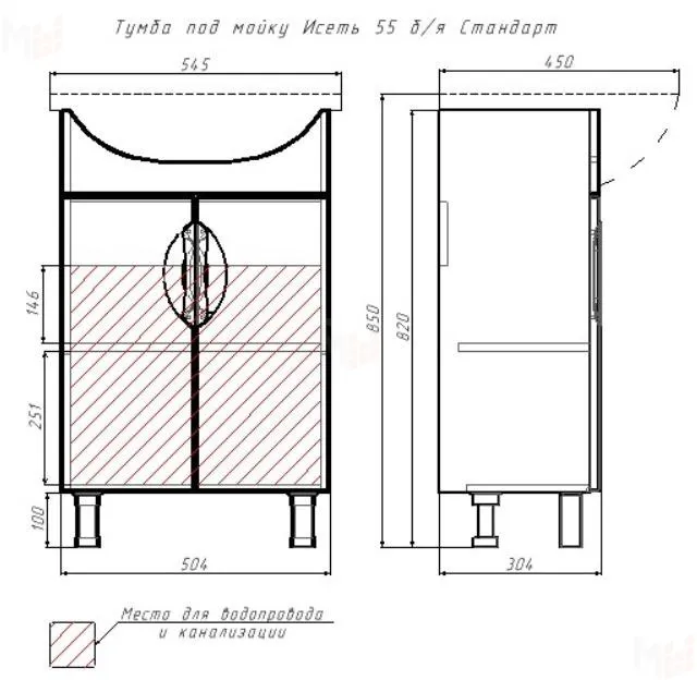 Тумба под умывальник "Исеть 55" Стандарт без ящика Айсберг.