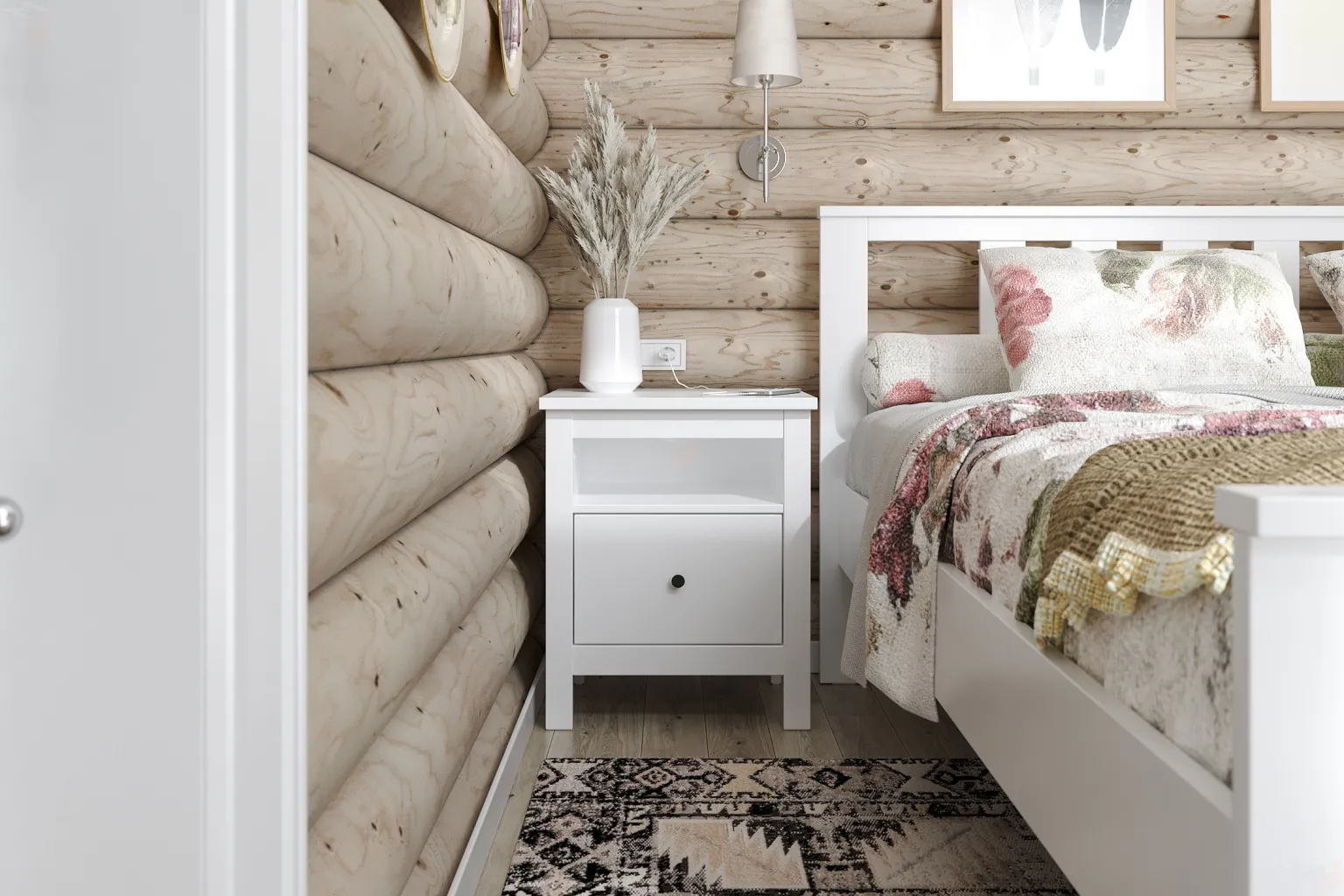 Тумба Сага входит в состав одноименного спального гарнитура.