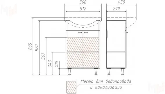 ширина 512 мм, глубина 299 мм, высота 820 мм