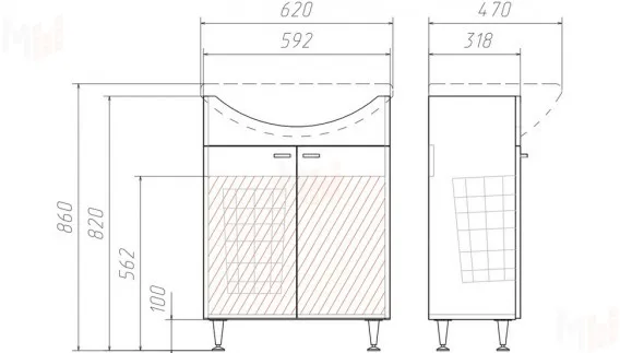 ширина 592 мм, глубина 318 мм, высота 820 мм