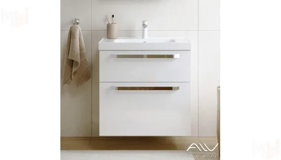 Монтируется тумба с раковиной при помощи L-образных навесов. Подвесная конструкция позволяет экономить пространство, выгодно дополняя любой интерьер.