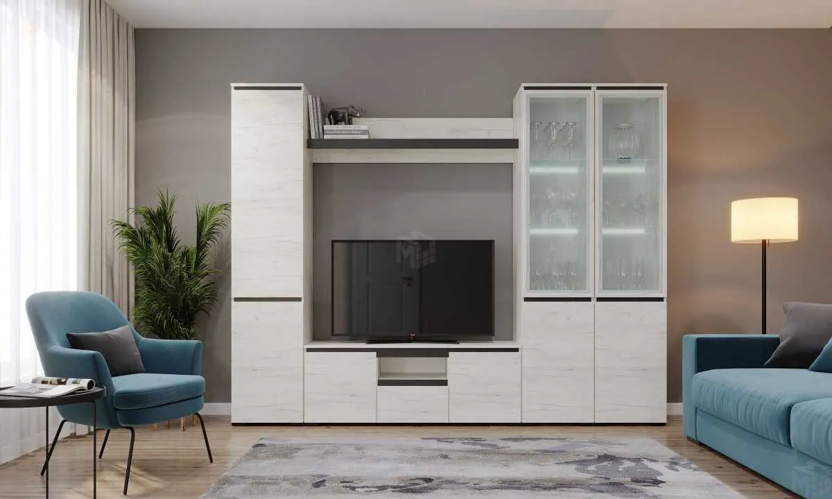 Тумба TV ГРЕТТА Дуб Крафт белый - Антрацит