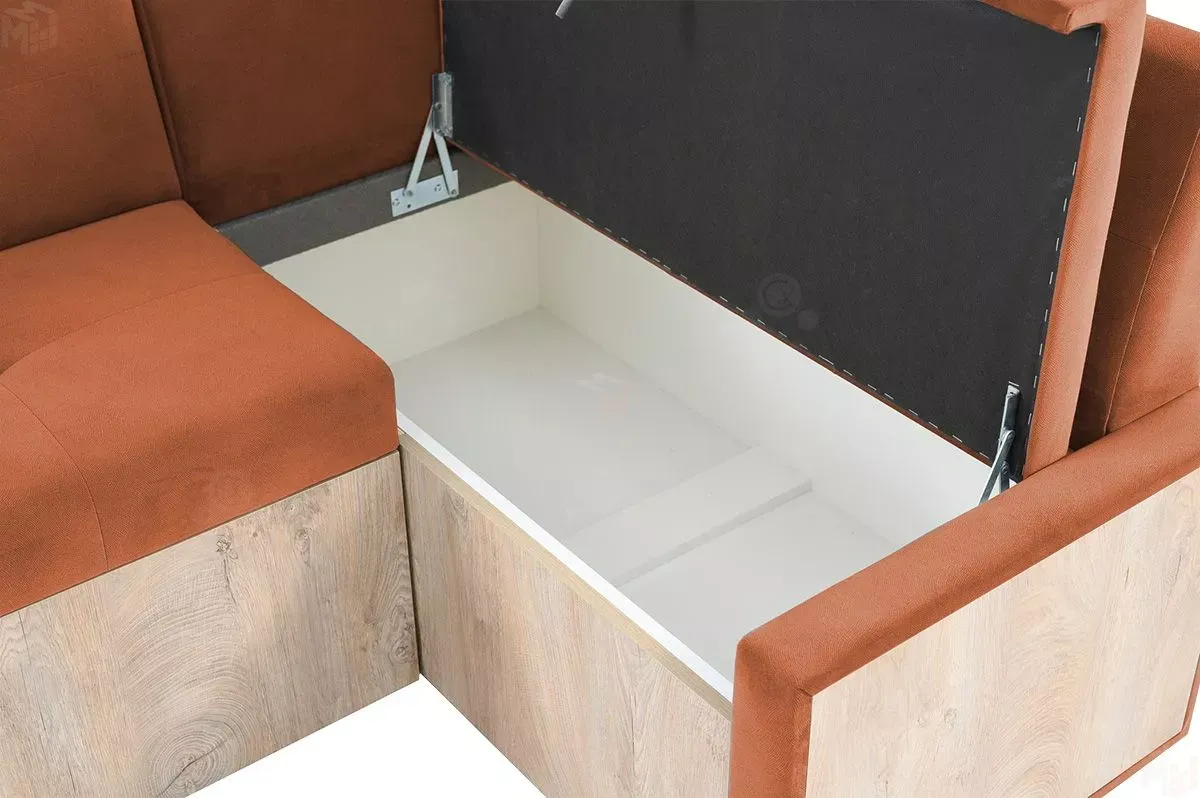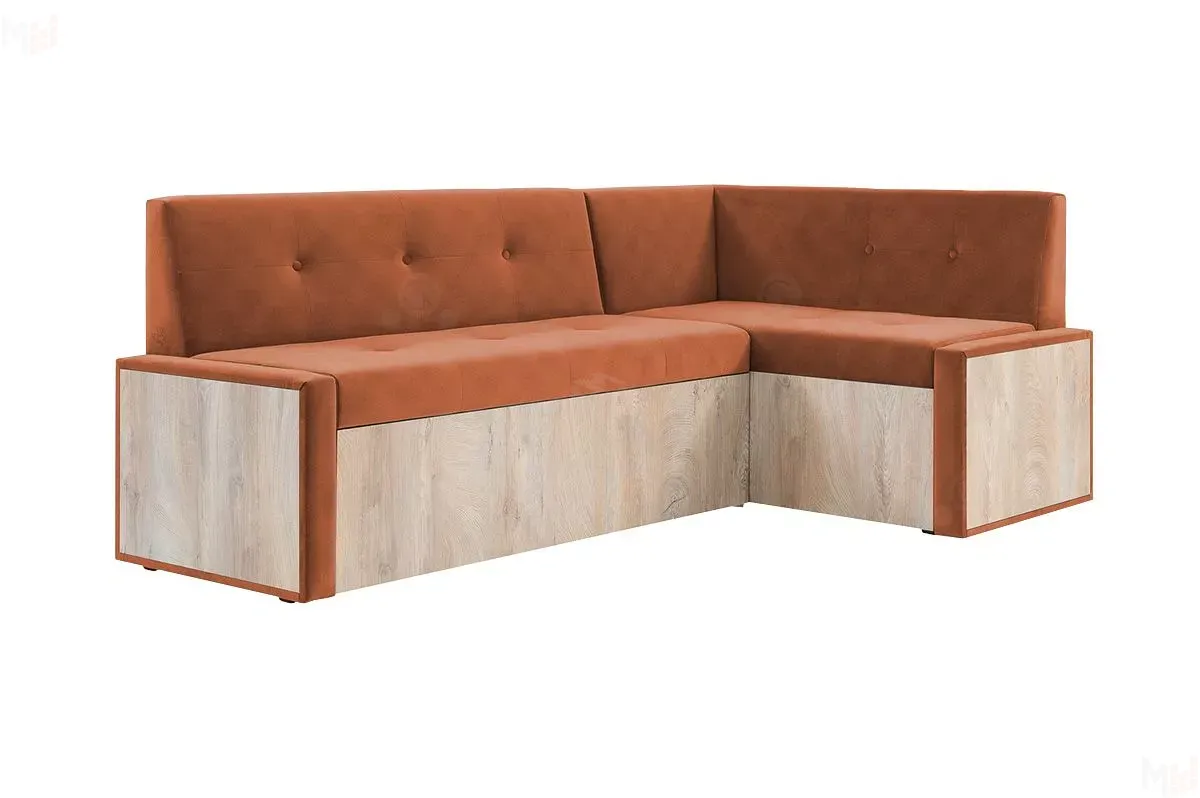 Стильная модель, оригинальность которой придают декоративные элементы на передней части дивана. За счет них диван не будет пачкаться, это сократит время на уборку и сохранит внешний вид мебели на многие годы. Невысокая спинка модели, глубокое посадочное место. Отсутствие подлокотников позволяет сэкономить пространство и получить большее посадочное и спальное место. Диван выполняется со спальным местом с трансформацией «дельфин», в угловой части предусмотрен большой выкатной вместительный бельевой ящик. По спинке и сиденью сделана прошивка и утяжка, что позволит материалу обивки дольше сохранить свой первоначальный вид. Большой выбор размеров, вариантов обивки и декоративных элементов ламинированной плиты с древесным, каменным или однотонным дизайном создадут эксклюзивный дизайн.