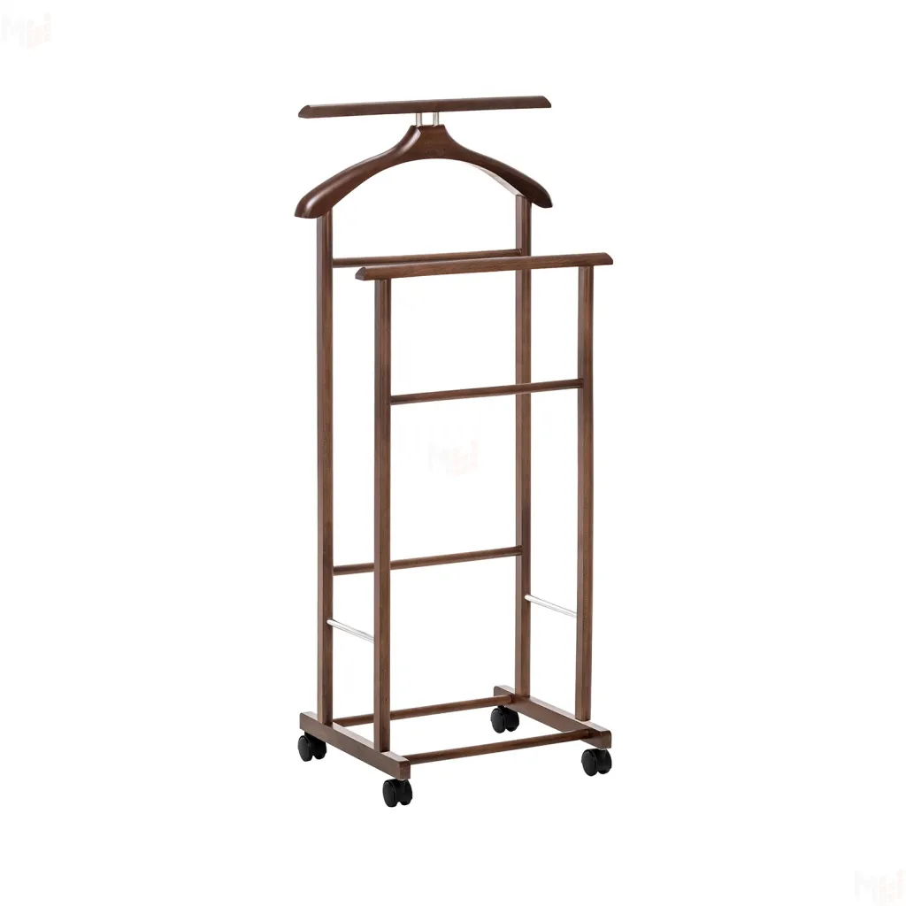 Изделие изготовлено из массива бука, покрыто высококачественным итальянским шелковисто-матовым лаком. Двойная вешалка предназначена для компактного хранения одежды, занимая минимальное пространство в вашем доме, при этом украшает интерьер. Алюминевые трубки являются элементами крепежа, которые не позволяют стойкам вешалки со временем расшатываться, а так же служат элементом декора. Наличие колес на вешалке, позволяет легко передвигать ее с одного места на другое. В данном изделии сочетаются простота и функциональность, аккуратность и красота.