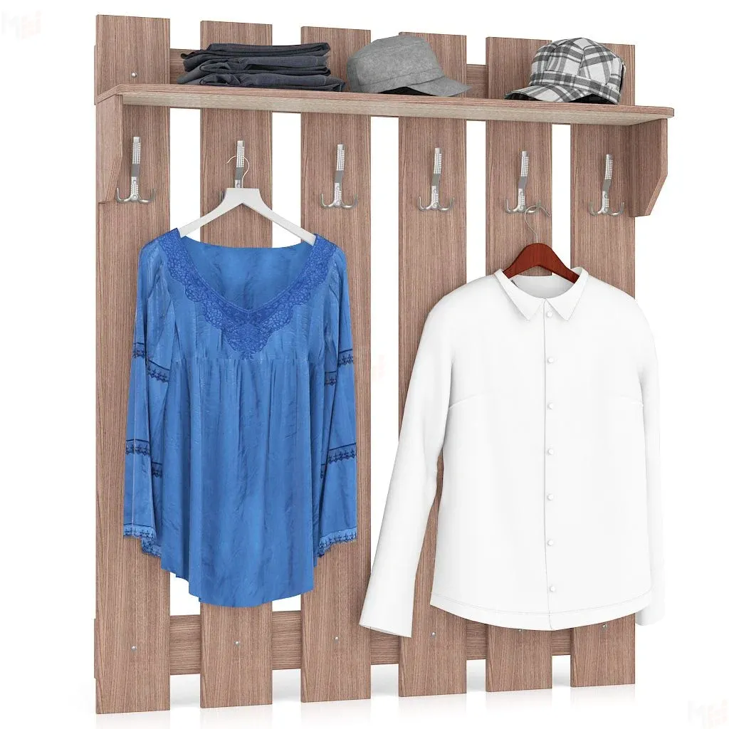 Навесная панель вешалка на 6 крючков, шириной 120 см. Материал ЛДСП. Цветовое исполнение на выбор: ясень шимо темный, ясень шимо светлый или венге.