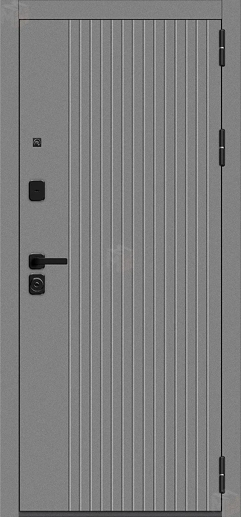 Входная дверь класса Комфорт с наружным открыванием. Изготовлена из легированной холоднокатаной стали.