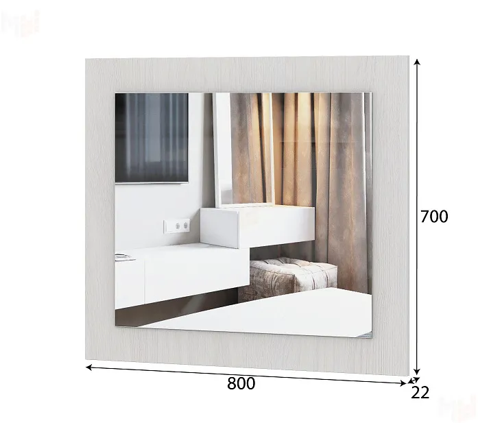 Зеркало представляет собой основу из ЛДСП Ясень Анкор светлый и зеркала 640 х 540 мм с еврообработкой , которое приклеивается к основе при сборке.