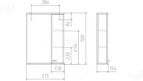 ширина 500 мм, глубина 154 мм, высота 700 мм