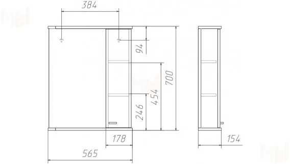 ширина 550 мм, глубина 154 мм, высота 700 мм
